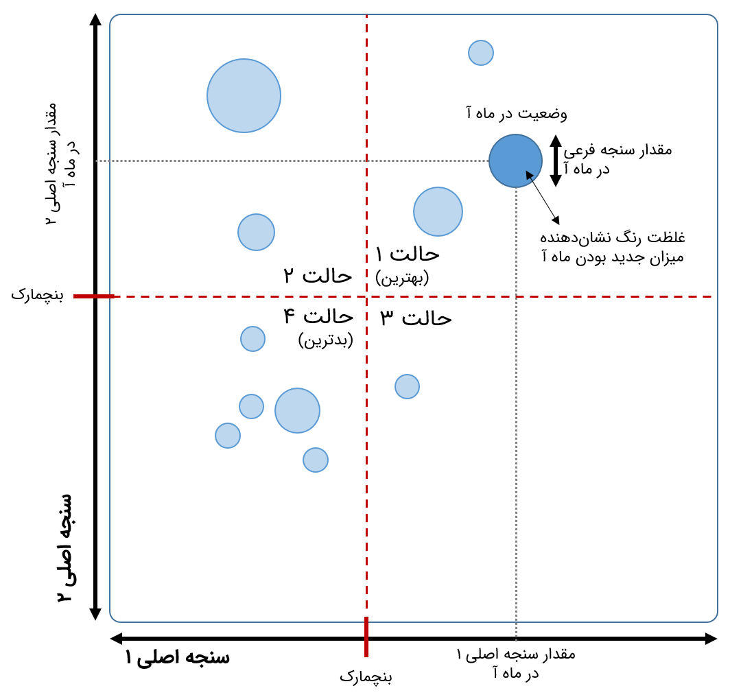 - روند تغییرات را نشان دهد. وقتی در مورد رشد حرف میزنیم در مورد روندی که یک کسبوکار در طول زمان طی کرده تا به وضعیت الان برسد حرف میزنیم نه نقطهای که همین حالا در آن قرار دارد. پس مدل ارائه شده باید روند تغییرات در طول زمان را به ما نشان دهد.